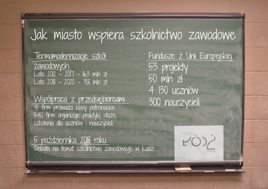 Na termomodernizacje budynków szkół zawodowych już miasto wydało ponad 16 mln zł, a w planach są prace w kolejnych placówkach szacowane na kwotę ponad 31 mln zł. Te inwestycje są możliwe dzięki wsparciu unijnemu. Kolejne 50 mln zł to 53 projekty „miękkie” realizowane przez szkoły, również dzięki środkom z Brukseli. Odrębną formę wsparcia szkoły dostają od firm z Łodzi, regionu ale także tych o zasięgu europejskim. Ponad 540 firm organizuje staże, praktyki i szkolenia, 41 prowadzi klasy patronackie.