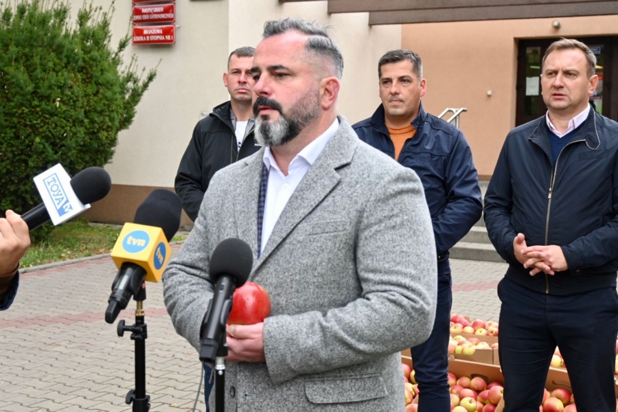 "Chcemy dzisiaj powiedzieć kilka zdań o szkole, ale w takim bardzo pozytywnym aspekcie, co moglibyśmy zrobić, żeby w polskich szkołach było zdrowiej, żeby było smaczniej i żeby było po polsku. Wiemy doskonale, że mamy kryzys, wiemy, że w kryzysie wszyscy mamy kłopoty i my byśmy w tym kryzysie oczekiwali od ministra edukacji, że polskim szkołom będzie pomagał i polskie szkoły będzie wspierał. Natomiast jeżeli nie jest w stanie wykrzesać z siebie działań pozytywnych co do cen prądu, cen ciepła, jeżeli nie jest w stanie nic dobrego zrobić dla podstawy programowej, to chociaż niech coś dobrego zrobi z polskimi produktami, których dzisiaj jest nadmiar. Symbolem naszego spotkania będzie polski jabłko, a to dlatego, że 28 września było święto jabłka i przyjechał dzisiaj do Łodzi pan poseł Iwaniak, bo mamy konkretne rozwiązanie i konkretną propozycję, jak z polskim sadownikiem, poprzez Rządową Agencję Rezerw Strategicznych, zrobić przyjemność i zapewnić zdrową przekąskę dla naszych uczniów, nie tylko w szkołach ponadpodstawowych, bo jesteśmy przed szkołą ponadpodstawową, ale również w szkołach podstawowych" - mówił poseł Tomasz Trela, wiceprzewodniczący Klubu Poselskiego Lewicy.